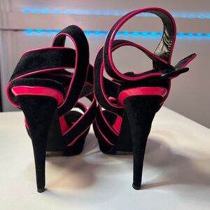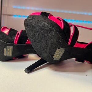 Step out in style with these elegant black and pink strappy heels. Perfect for any occasion, these shoes offer both comfort and sophistication.