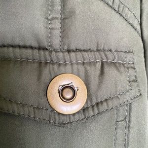 Features: Olive Green color, Super warm for winter , Removable faux fur lined hood, Many pockets- 4 total (2 small , 2 average ), Snap Button enclosures, front Zipper, kinda stretchy hem