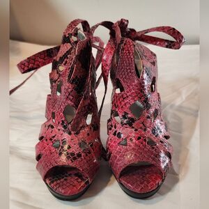 Dollhouse Y2K Pink And Black Faux Snakeskin Strappy High Heels No Size 9.75in Insole minor wear