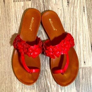 dollhouse Sandals, Size 8/38, Red with Flowers. Very Good Condition. 265/II