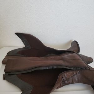 Dollhouse Women Brown Leather Full Zipper Under Knee High Heels Boots Size 8. Heel 3 " . Shaft by back seam appr 14" .Circumference of top openingappr 15" .Felt lining .Overall in very good condition .