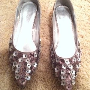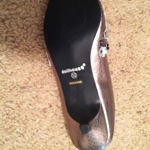 These Glamorous Dollhouse shoes are silver with Flower like design. Great with any modern formal outfit or everyday business attire. They were worn once to a formal event and look new! Let me know if you are interested!