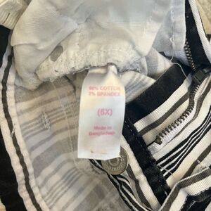 Cute black/white striped shorts Size 6X but runs small 98% cotton 2% spandex