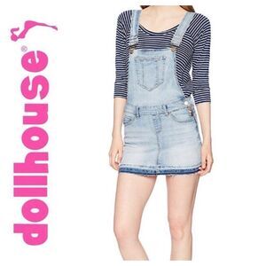 Dollhouse bibbed overall jumper dress. Classic overall style with pockets in front and back. Raw edge hem. Armpit to armpit measures approx. 14" (was hard to measure) and length measures 30". In gently used but excellent condition in a juniors size 5. Tags: boho, bohemian, hippie, gypsy, festival, jumper, overalls, short, mini. R-68