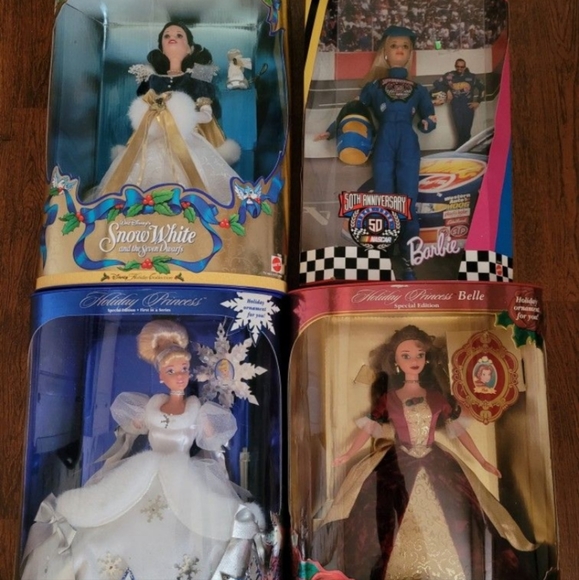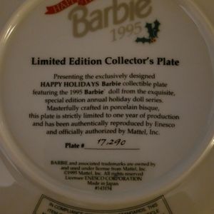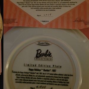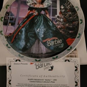 4 collectable Barbie dolls and 2 collectible plates all with original Box boxes are in fair condition never open never played with