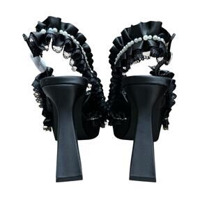 Dolls Kill 7 Sugar Thrillz Baroque Lace Ruffle Pearl Romantic Sling Back Heels