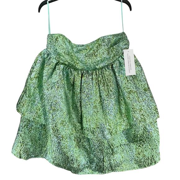 Amylynn Sara Mini Dress Womens Size M Green Brocade Bandeau Strapless Coquette