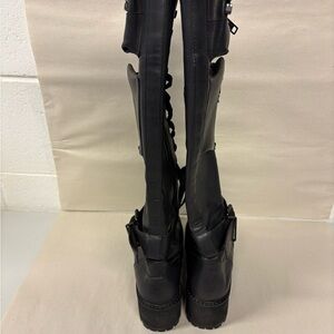 Dolls Kill Black Combat Lace-Up Knee-High Boots