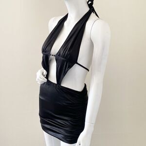 New without tags. Liquid look, features a little square rhinestone detail at the front and adjustable side ruching. Purchased from a Dolls Kill online auction. Perfect New Years dress.
