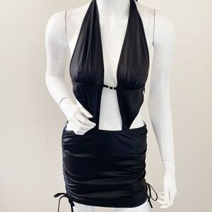 Dolls Kill Brand New Pink Y2K Paris Hilton Vibes Black Deep V Halter Mini Dress