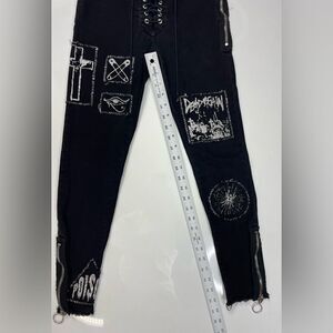Dolls Kill Current Mood Miss Murder Lace Up Patch Denim Jeans Women Small
