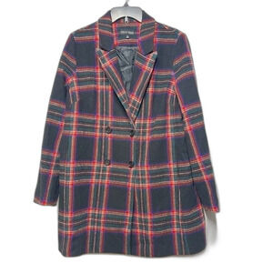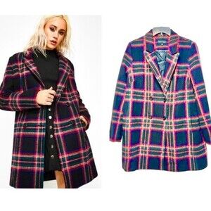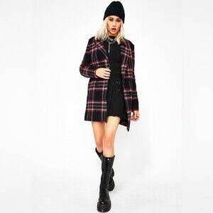 Dolls Kill Current Mood Mutual Disrespect Plaid Wool Pea Coat L