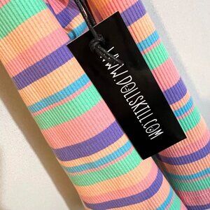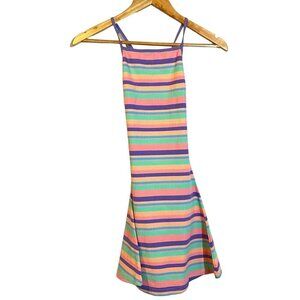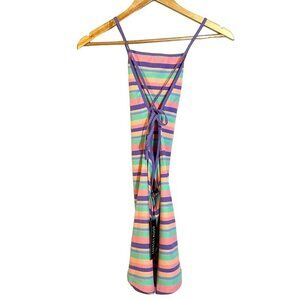 Dolls Kill Current Mood NWT Colorful Striped Ribbed Halter Dress Open Back S