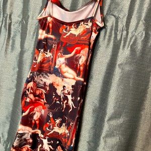 Has a tie on one side of the dress so you can adjust the length to your liking