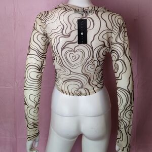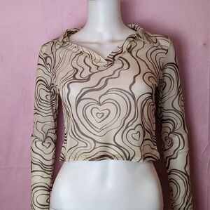 Dolls Kill Daisy Street Sheer Mesh Marble Heart Print Crop Top size Small
