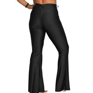 Dolls Kill Flare Pants Black Lace Up Shiny Stretch High Waist Grommet Size Small