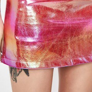 Dolls Kill HOROSCOPEZ Pink Holo Mini Skirt Large