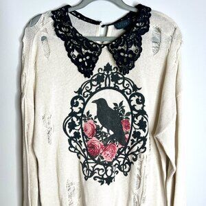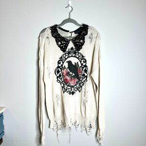 Dolls Kill Midnight Dreary Distressed Cameo Sweater Gothic Whimsigoth Sz XL
