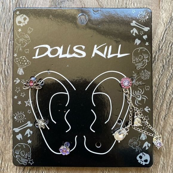 Dolls Kill Multi Piercing Whimsical Stud Earrings w Chain Drop Crystal Earrings