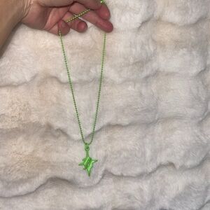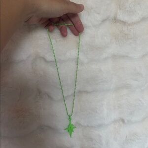 Vibrant neon green necklace with a unique pendant. Perfect for adding a pop of color.