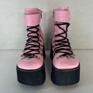 Dolls Kill Platform Boots size 8 Demonia Kera-21 Pink Whimsigoth Lace Up Punk
