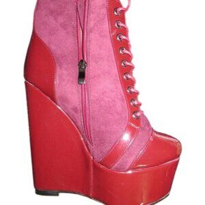 Dolls Kill Suede & Patent Leather Platform Boot Wedges Pink & Red NWT size 7 37