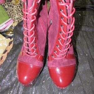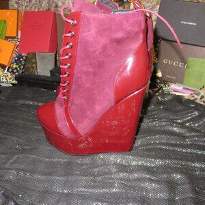 Dolls Kill Suede & Patent Leather Platform Boot Wedges Pink & Red NWT size 7
