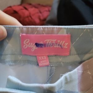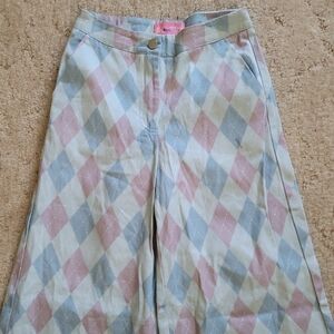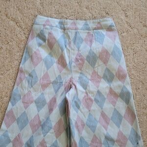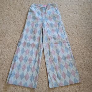 Dolls Kill Sugar Thrillz Blue and Pink Argyle Print Wide Leg Pants