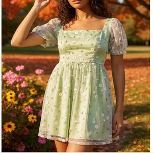 Dolls Kill Sugar Thrillz Come Away With Me Daisy Floral Embroidered Mini Dress 1X