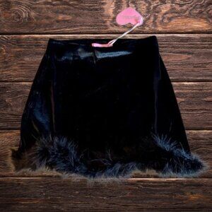 cuz you've got 'em calling out your name. This mini skirt has a velvet construction, fluffy marabou feather trim, and a high waist fit.