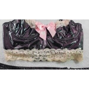 Dolls Kill Widow Black Pink Lace Two-Piece Set Sz S Kawaii Goth E Girl Lingerie