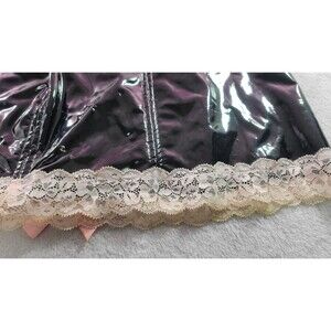 Up for sale is a Dolls Kill Widow Black Pink Lace Two-Piece Skirt Set. This item is in good condition. It has pink lace, with some slight yellowing on the lace in areas as well as the bows. Aside from that, it's in very good condition.