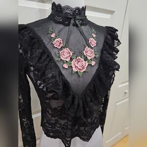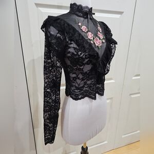 Dolls Kill Widow Goth Black Floral Witchy Victorian Flawless Passion Lace Top S