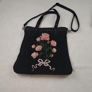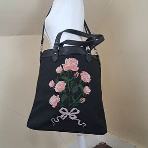 Dolls Kill Widow Shadow Bloom Floral Embroidered Cross-Stitch Black Tote Bag