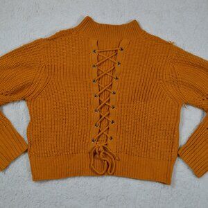 Dolls Kill orange sweater textured knit with corseted back detail L