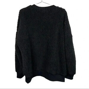 This cozy pullover sweatshirt has a soft teddy faux fur construction, a relaxed oversized fit, and an embroidered Hello Kitty graphic on the front.