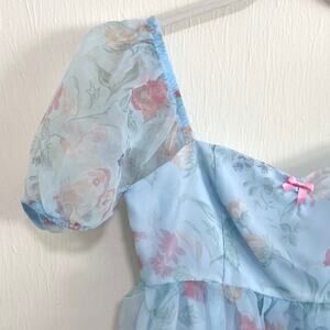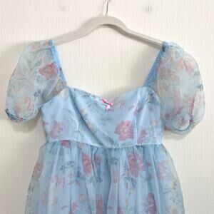 Dolls Kill x Hollie Hobby Babydoll Floral Dress M Blue Sheer Puff Sleeve Fairy Cottage Coquette Feminine Romantic