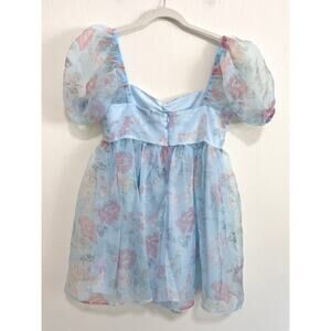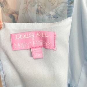Dolls Kill x Hollie Hobby Babydoll Floral Dress M Blue Sheer Puff Sleeve Fairy