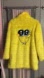Bright yellow faux fur coat featuring a playful cartoon face design. Perfect for adding a fun touch to your outfit.