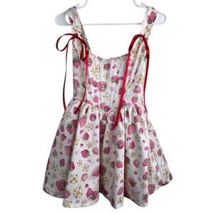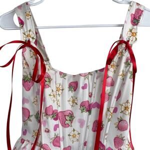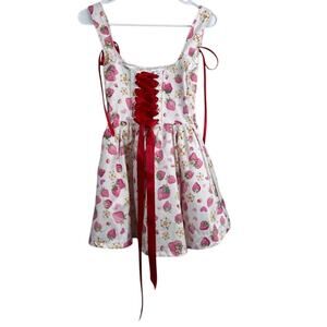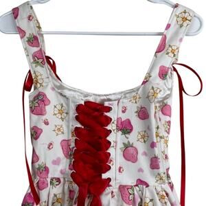 Dolls Kill x Strawberry Shortcake Lady Bug Summer Corset mini dress with ribbon in the front and back.