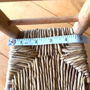 Chair for a doll or Teddy Bear. Wooden frame. Seat is woven rattan. Back is 10-1/3” high. Seat is 5” deep and 5” off the ground. See photos for other dimensions. Vintage, used by several well loved toys over the years.