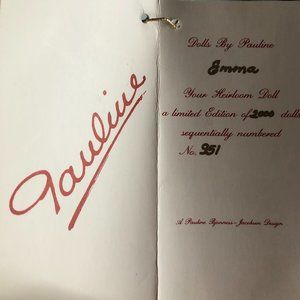@valcub Valerie, HAPPY New Year! So loving the 'like' of my sweet "Emma" doll. This Pauline doll is rare and in untouched condition...a real find! Please feel free to comment me with any questions. Happy Posh shopping!!! Melissa