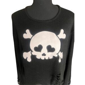 Dolls kill dead wrong skull M/L distressed knit long sleeve black sweater