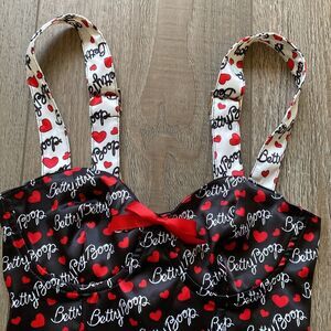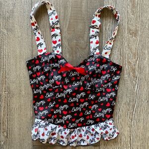 Dolls Kill Betty Boop Collab Graphic Heart Pattern Bustier Tank w Ruffle Trim