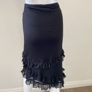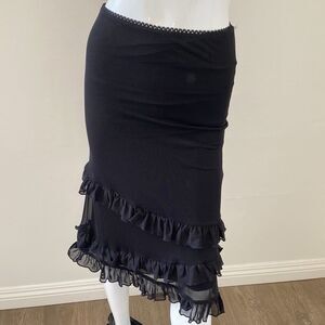 Dolls Kill Brand Grave Girls Black Mesh Tiered Ruffle Hem Midi Skirt
