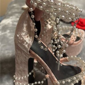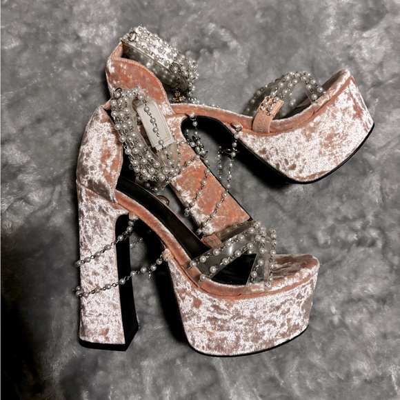 Size 7.5! Price reduced because one of the charms is missing on one of the shoes. Good used condition! Pretty light pink. Ariana Grande wore in a music video. ๐