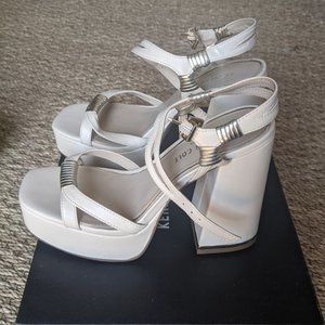 Keywords: platform nude dress sandal block heel wedding bridesmaid strappy simple Platform chunky block heel 90's sandal nude strappy formal summer