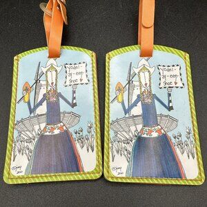 Dolly Mamas By Joey Luggage Tag Set of 5 Africa Holland Canada 2010 Set of 5 luggage tags Rare Dolly Mamas by Joey luggage tag set of 5, released in 2010. Fun and Whimsical travel designs featuring Africa, Holland, Canada, and others. Durable plastic tags with strap attachments. Great for travel, collectors, or as a unique gift. Light storage wear, no major flaws. Hard-to-find complete set.