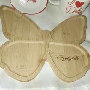Enhance your kitchen with the Dolly Parton Butterfly Bamboo Tray Set. This charming set includes a bamboo tray, a ceramic spoon rest, and a mug, all featuring delightful Dolly Parton designs. Perfect for fans and collectors alike.
