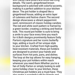 Dolly Parton Candy Cane Swirl Oranament Pot Holder